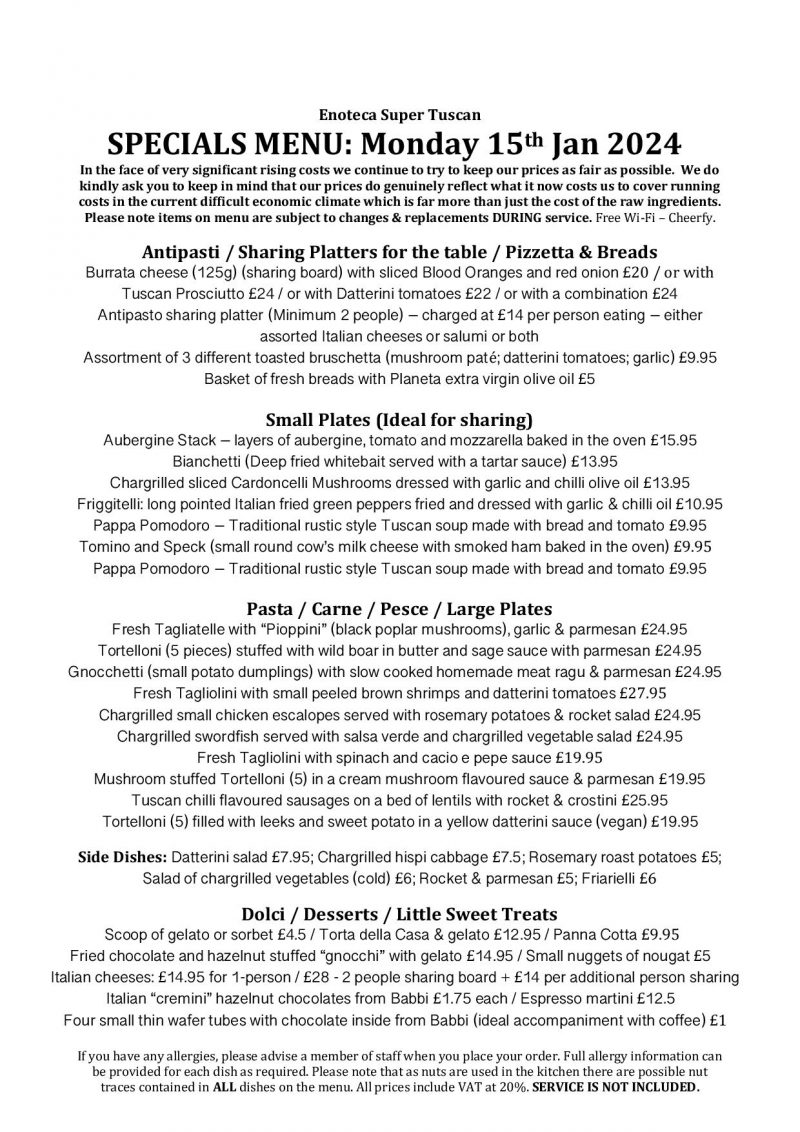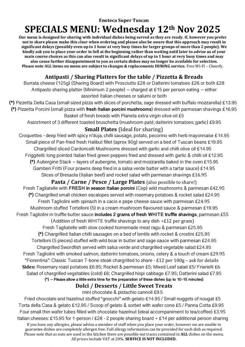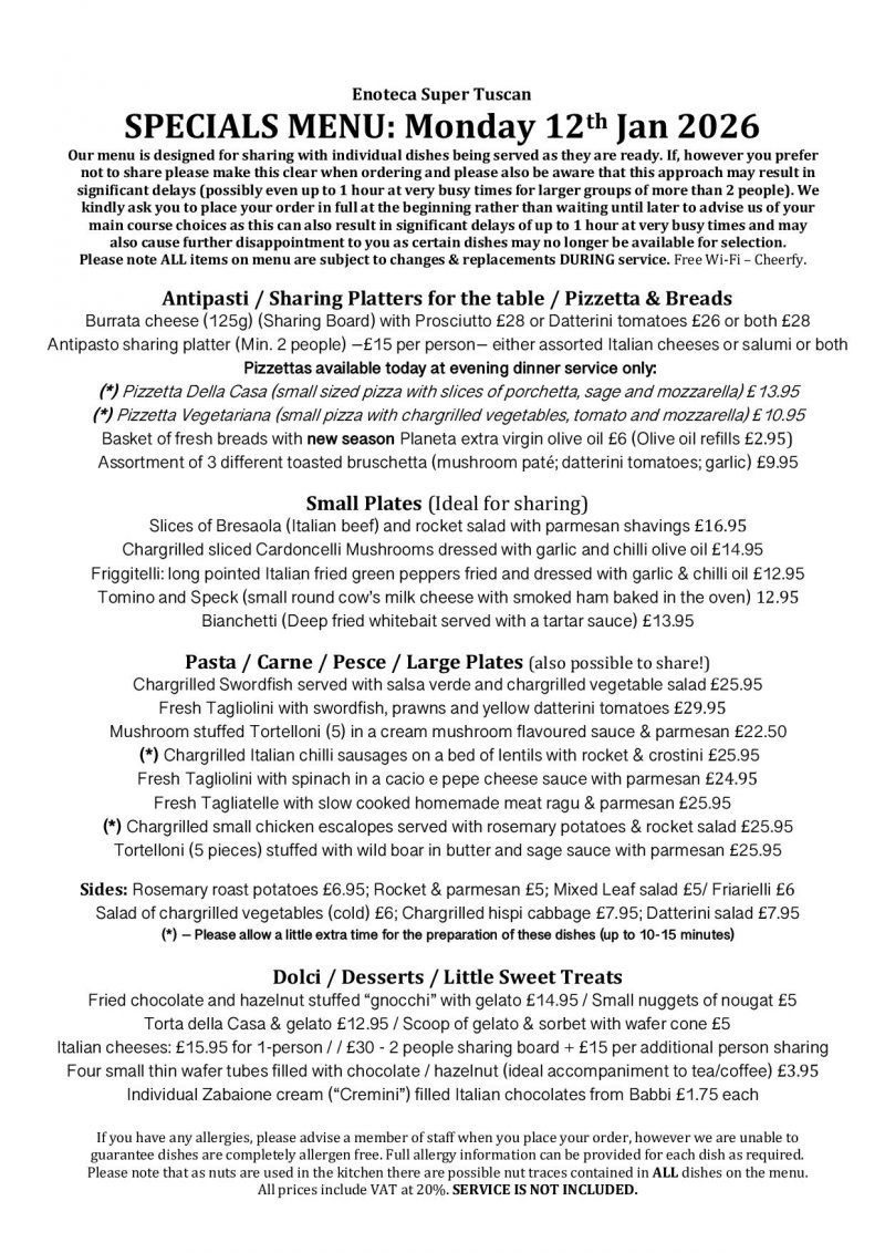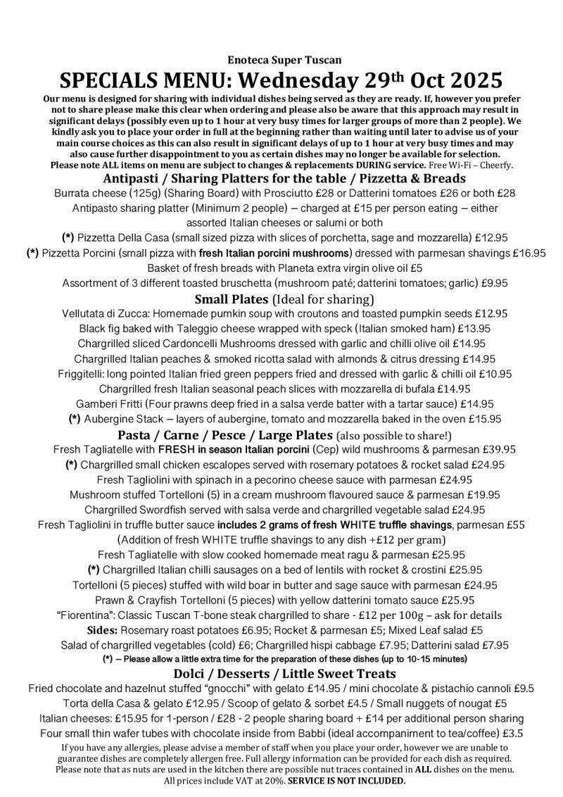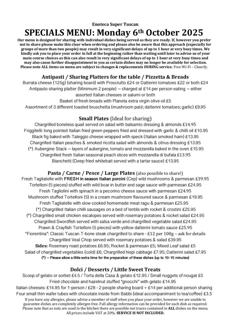 Just as the Super Tuscans sought to offer something different, we will seek to offer the more unusual and finer wines and ingredients that Italy has to offer together with the best of the old favourites. We believe that good Italian food means quality ingredients cooked with minimum fuss to bring out maximum flavour and as such we have spent time seeking out the best suppliers.